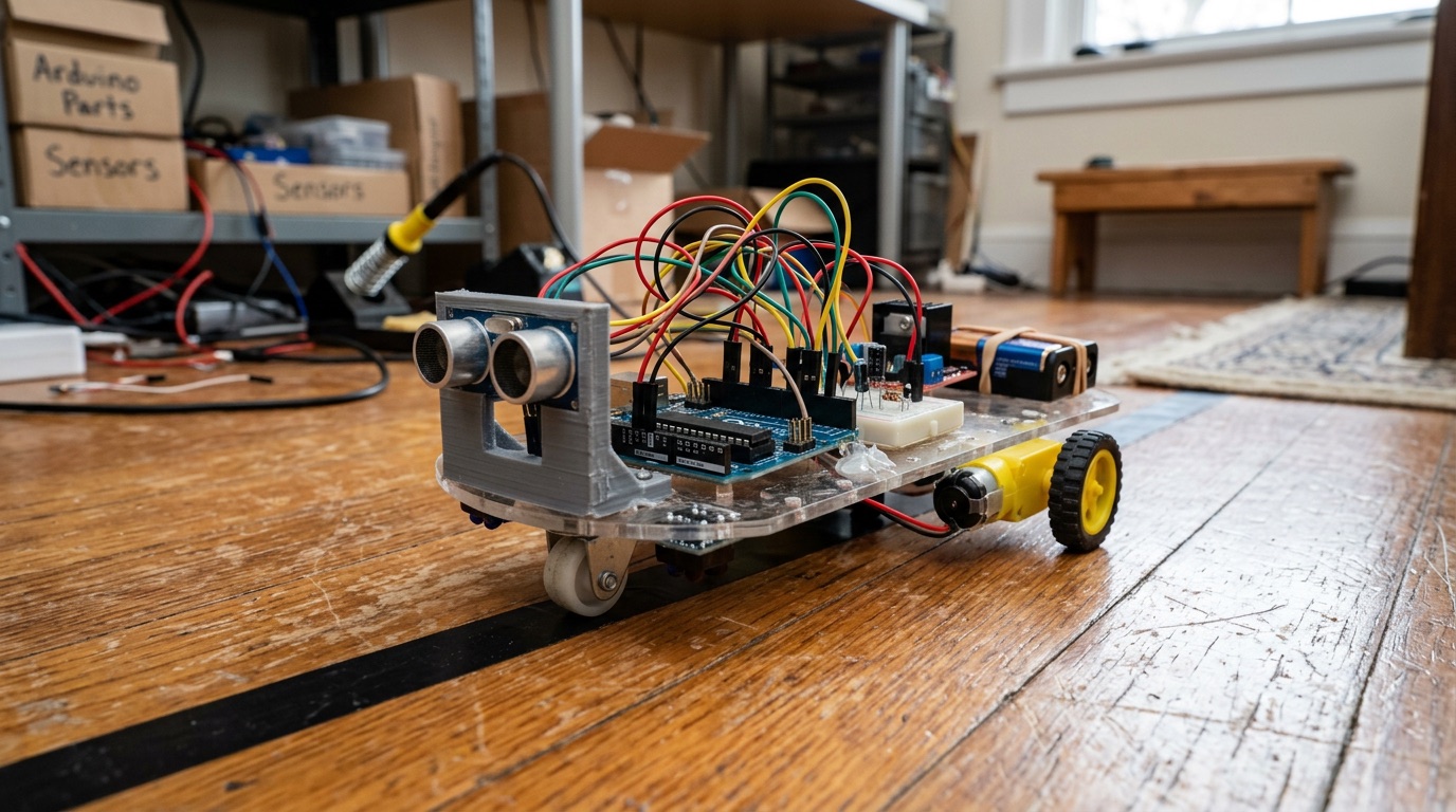 라인·초음파 센서로 주행 로직을 구현합니다.